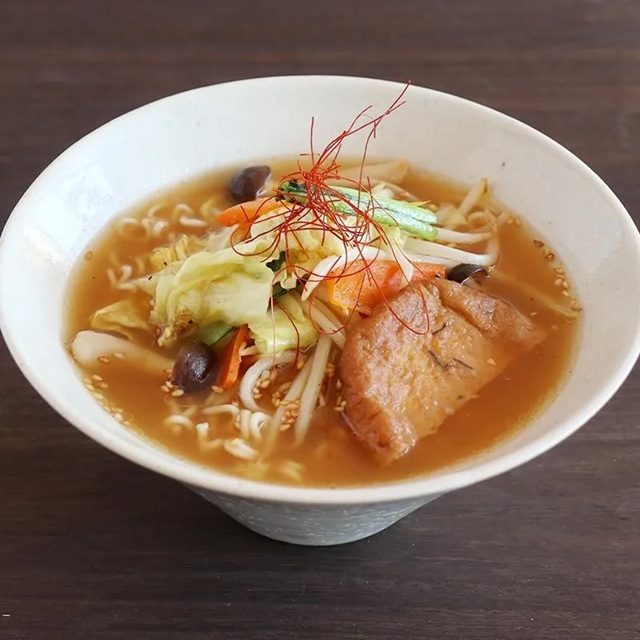 スープは、国産有機玄米味噌を活かし、にんにくエキス、昆布粉末などの植物性原料だけを使用してコクのあるスープに仕上げております。何度も試作を重ね、動物性のだしを使わずに満足感の高いスープに仕上げました。ヴィーガンの方にもお召し上がりいただけます。香料、着色料、乳化剤、酸化防止剤は使っておりません。